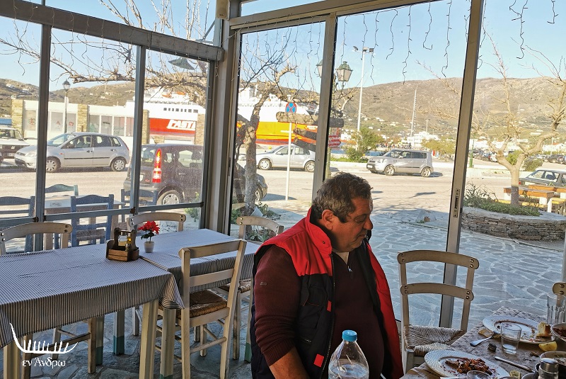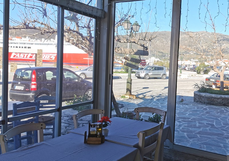 Όμως κι αυτοί με το που μπήκε το καράβι σηκώθηκαν για να το προλάβουν. Έμειναν μερικοί ντόπιοι. Αλλά και οι επιβάτες λόγω της εξαιρετικής θέσης του εστιατορίου είχαν άνεση χρόνου. Είδαν το πλοίο να μπαίνει. Ζήτησαν λογαριασμό. Πλήρωσαν. Και μέχρι να δέσει ο καπετάν-Μάκης αυτοί ήταν ήδη στην προβλήτα. Μιλάμε για πολύ εξυπηρετική θέση για τους ταξιδιώτες, πέρα από το εξαιρετικό φαγητό για το οποίο έχουμε ξαναγράψει...