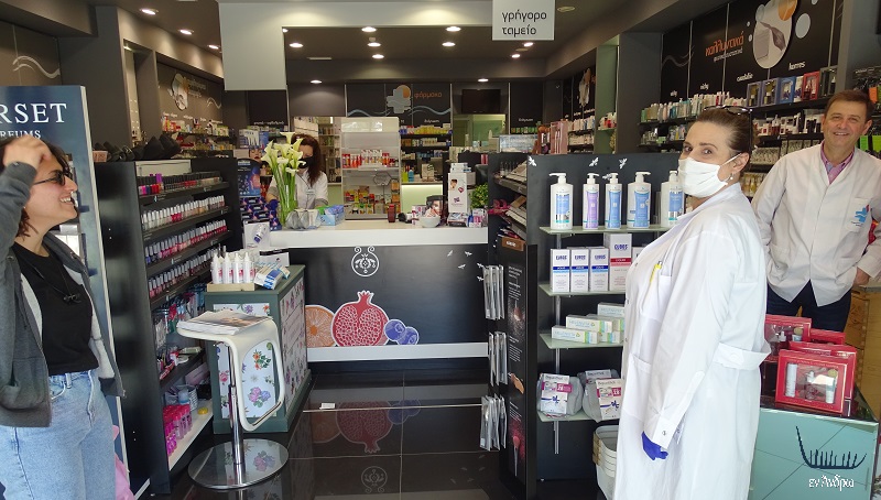 Και το φαρμακείο Γαυρίου. Πρώτη γραμμή άμυνας απέναντι από τα καράβια. Μάκης και Αθηνά δίνουν την μάχη της... απολύμανσης!!! Ευτυχώς με επιτυχία μέχρι τώρα...