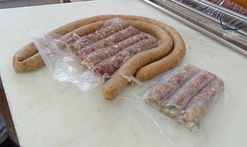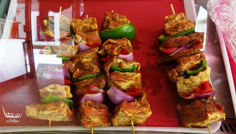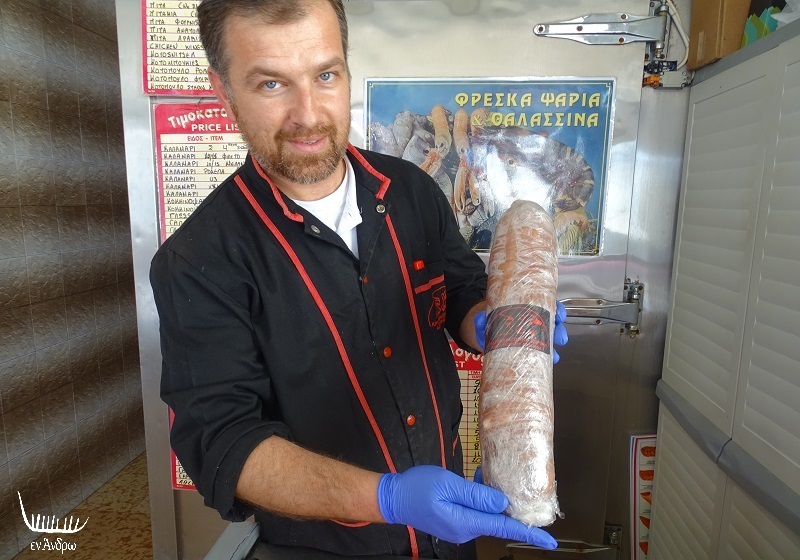 Μετά από αυτή την εφ' όλης της ύλης εισαγωγή μας έδειξε όλη την "μεταποιητική" προσπάθεια που κάνει στη φάρμα του ετοιμάζοντας τόσο για το μαγαζί του όσο και για την αγορά της Μυκόνου δικά του επεξεργασμένα προϊόντα όπως κοντοσούβλι, κοκορέτσι, σεφταλιά και λουκάνικα αέρος τριών ειδών. Όλα αυτά με ειδικές συσκευασίες φεύγουν από την Άνδρο έτοιμα για την αγορά της Μυκόνου.