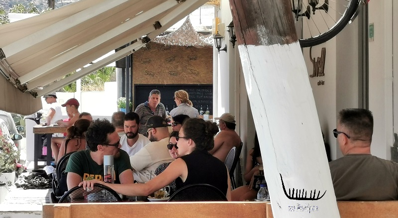 Στο καφέ-μπαρ Swell η νεολαία έχει κατακλύσει όλα τα τραπεζάκια.