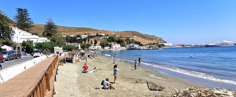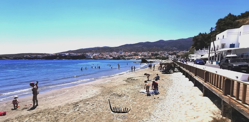Με την εξαιρετική πεζογέφυρα του και την ωραία αμμουδιά του. Το πράσινο και τα παραλιακά καφε-μπαρ και αναψυκτήρια του. Μια ωραία και βαθιά ανάσα στο καλοκαίρι που επιτέλους έφτασε στην Άνδρο...