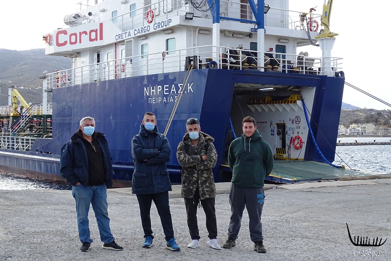 Συζητάμε και μαθαίνουμε πως οι 3 από τους τέσσερις αξιωματικούς είναι από... Πελοπόννησο! Τους φέρνει όλους και βγάζουν μια αναμνηστική φωτογραφία για την ιστοσελίδα μας. Από αριστερά πρώτος ο καπετάν Μανώλης, από Αρκαδία, δεύτερος ο υποπλοίαρχος καπετάν Κώστας, από Αργολίδα, τρίτος ο ανθυποπλοίαρχος καπετάν Νίκος, από την Καλαμάτα και τέταρτος ο ανθυποπλοίαρχος καπετάν Ηλίας, από την Τήνο. Πρωτότυπη σύνθεση. Κυριαρχούν οι Πελοποννήσιοι! Έχουν όμως κι ένα Τηνιακό... για ξεκάρφωμα! Γελάνε που τους λέμε πως στην ακινησία των ημερών... ότι κινείται είναι είδηση! Τους χαιρετάμε και φεύγουμε. Το νησί ανεφοδιάστηκε μέχρι τις 16:30. Ο ΝΗΡΕΑΣ Κ. με τους αναγνώστες μας έφυγε για Νάξο...