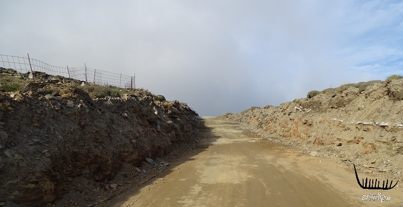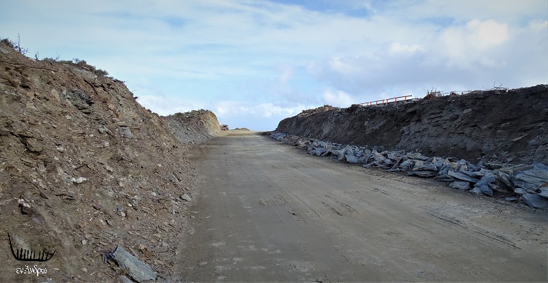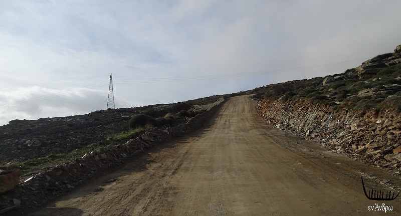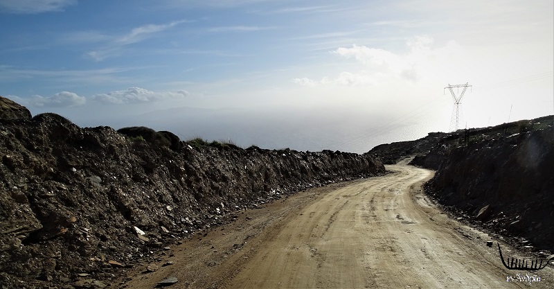 Ο μικρός 5μετρος δρόμος που περνά μέχρι σήμερα κάτω από την κορυφή του Προφήτη Ηλία λίγες δεκάδες μέτρα πριν την νέα διαδρομή προς το αιολικό πάρκο. Θα διαπλατυνθεί προσεχώς...