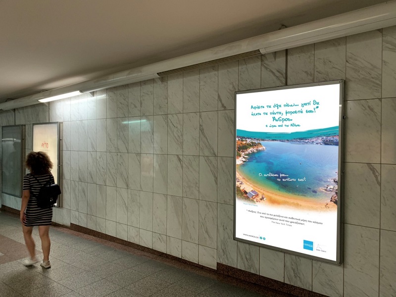 Παράλληλα, θα «τρέχει» καμπάνια για 14 ημέρες στους σταθμούς του Μετρό Αττικής. Το εμπλουτισμένο πρόγραμμα προβολής για την Ελληνική αγορά είναι εμπνευσμένο από το πολυποίκιλο τουριστικό «προϊόν» της Άνδρου που είναι γεμάτο εναλλαγές και αντιθέσεις με σλόγκαν «οι αντιθέσεις μας το αντίδοτο σας», αλλά και από τις πρόσφατες σημαντικές διακρίσεις που απέσπασε ο προορισμός σε κορυφαία ΜΜΕ διεθνούς βεληνεκούς.
