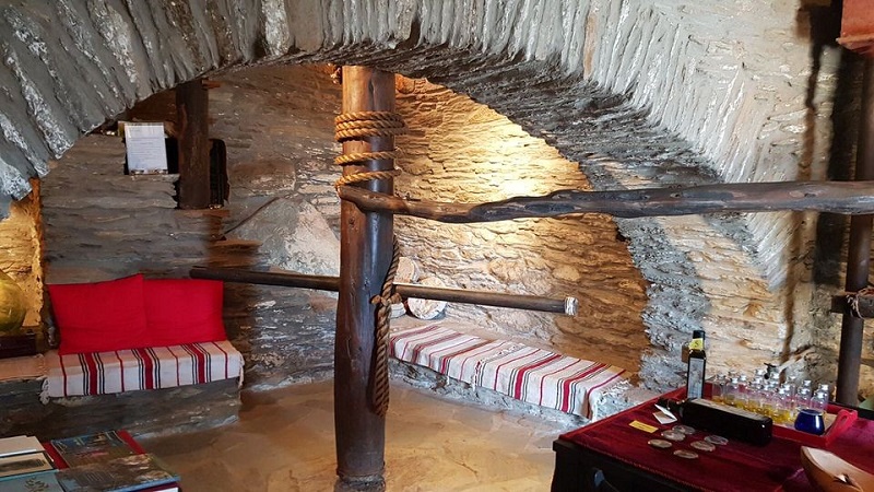 Ο Δημήτρης σε όλη τη διάρκεια της ξενάγησης μου εξήγησε όλα τα στάδια της παραγωγής του ελαιολάδου: Τον ζωοκίνητο τρόπο άλεσης στο ένα δωμάτιο, τον έξυπνο μηχανισμό συμπίεσης στο άλλο, και τέλος στο δωμάτιο αποθήκευσης, όπου η θερμοκρασία του χώρου ρυθμίζεται φυσικά από τον σχεδιασμό και την κατασκευή της ογκώδους τοιχοποιίας. Τα βασικά στοιχεία των διαφορετικών ποιοτήτων ελαιολάδου εξηγούνται με σαφήνεια, ώστε οι επισκέπτες να γνωρίζουν πολύ περισσότερα στοιχεία πλέον όταν αγοράζουν ελαιόλαδο.