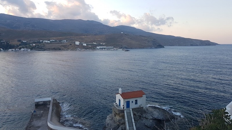 Από το λιμάνι της Ραφήνας ήταν η πρώτη φορά που θα ταξίδευα. 07.45 αναχωρούσε το πλοίο της Golden Star Ferries που έκανε μόλις 2 ώρες. Οι άνετοι χώροι του, η άριστη διακόσμησή του και φυσικά η τέλεια εξυπηρέτηση από το πλήρωμα σε κάνουν να νιώθεις ότι βρίσκεσαι σε κρουαζιερόπλοιο κι όχι σε πλοίο της γραμμής. Στη διάρκειά του βρήκα τον καπετάνιο και φυσικά δεν θα μπορούσα παρά να μην του κάνω συνέντευξη καθώς μετράει πολλά χρόνια στο επάγγελμα. Από 18 χρονών είναι στις θάλασσες και μου εξομολογείται ποιο ήταν το πιο δύσκολο ταξίδι που είχε στη ζωή του. Αφού δέσαμε στο λιμάνι του Γαυρίου, πήρα το αυτοκίνητό μου και κατευθύνθηκα προς τη χώρα και το ξενοδοχείο “Μικρά Αγγλία” οπου θα με φιλοξενούσε αυτές τις μέρες για το οδοιπορικό μου.