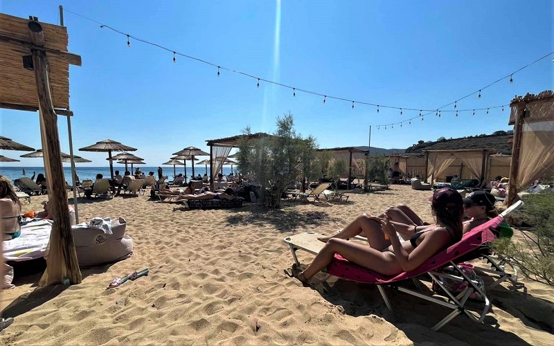 Το παραλιακό μπαρ KALYVA στην περιοχή του Γαυρίου. Στην αιχμή της καλοκαιρινής τουριστικής κίνησης με ξένους κι Έλληνες εξ Αττικής...