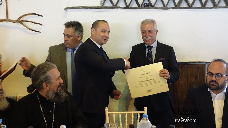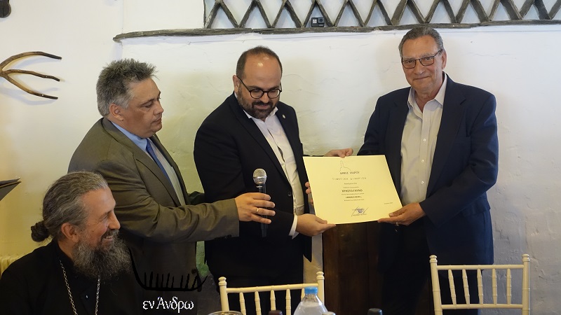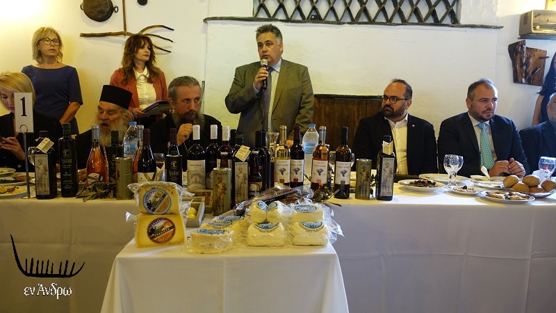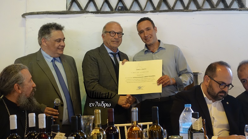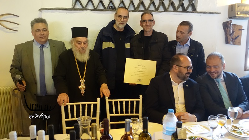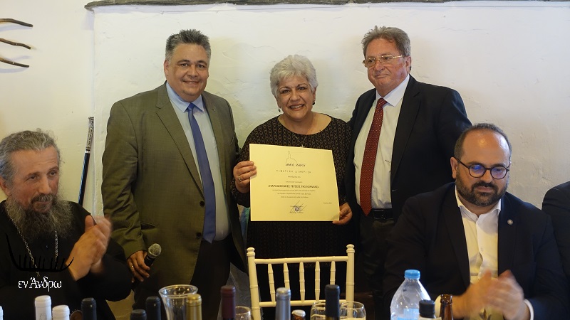 Μια λίαν εξαιρετική πρωτοβουλία πήρε ο δήμαρχος Άνδρου στο επίσημο τραπέζι ανήμερα της πανανδριακής γιορτής της Θεοσκεπάστου. Για πρώτη φορά επέλεξε μια σειρά ανδριώτικων επιχειρήσεων τυποποιούν ανδριώτικα προϊόντα με σκοπό την κάλυψη της αγοράς του νησιού και την εξαγωγή τους εκτός Άνδρου. Απονεμήθηκαν τιμητικές διακρίσεις σε 12 επιχειρήσεις τυποποίησης ανδριωτικών αγροτικών προϊόντων. Πρόκειται για μια έμπρακτη αναγνώριση του αθόρυβου και δημιουργικού έργου αυτών των επιχειρηματιών στην οικονομία της Άνδρου και στην αναβίωση μέρους της σπουδαίας αγροτικής καλλιέργειας του νησιού.