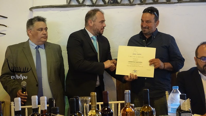 Ακολούθησε τιμητική διάκριση στο «Οινοποιείο Δημητρίου Μάστορη». Απονεμήθηκε στον Δημήτριο Μάστορη για το οινοποιείο του «ΔΗΜΗΤΡΙΟΥ ΜΑΣΤΟΡΗ», που βρίσκεται στην περιοχή Χώνες Κορθίου, το οποίο παράγει του οίνους “Pheroe” White, “Apanemo” Roze και “Koumari” Red. Την διάκριση απένειμε ο βουλευτής Κυκλάδων της ΝΔ Φίλιππος Φόρτωμας.