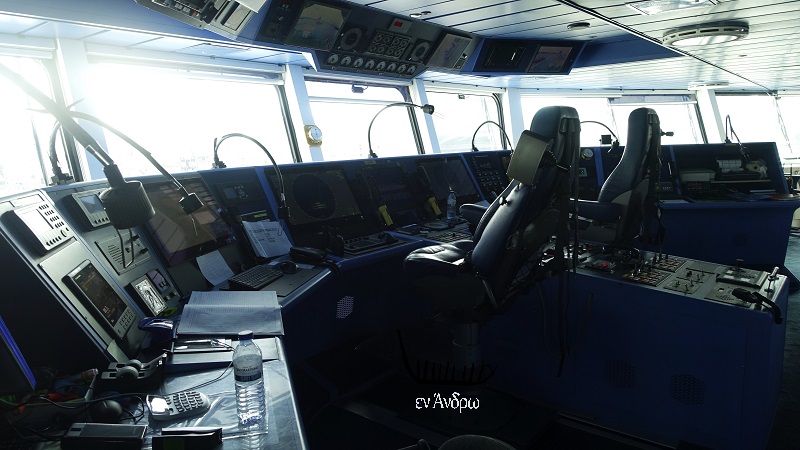 Και μια φωτογραφία της γέφυρας και των οργάνων της. Όλα ηλεκτρονικά και η οδήγηση με Joystic!...