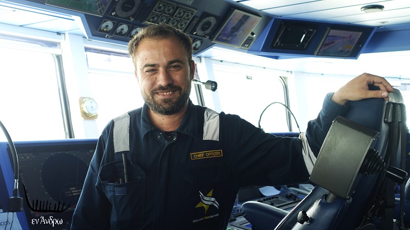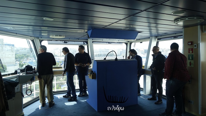 Στη γέφυρα βρήκαμε και τον ανδριώτη υποπλοίαρχο Νίκο Αποστόλη από το Μπατσί που ήταν ανάμεσα στους τρεις καπετάνιους που έφεραν το πλοίο από την Σουηδία στην Ελλάδα πλέοντας τη Βαλτική, την Βόρεια Θάλασσα, τη Μάγχη, τον Βισκαϊκό, τον Ατλαντικό, την Μεσόγειο.