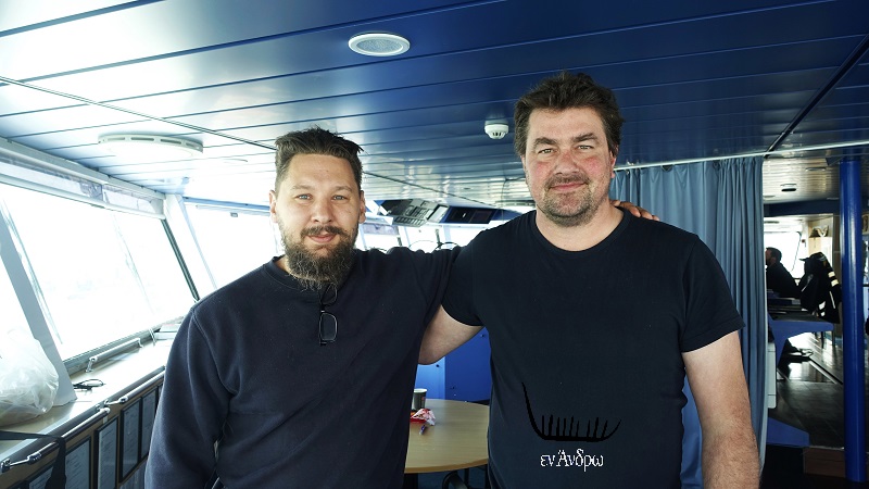 Στη γέφυρα βρήκαμε και δύο Σουηδούς μηχανικούς που είχαν την ευθύνη των ηλεκτρονικά καθοδηγούμενων μηχανών του πλοίου από την Σουηδία μέχρι την Ελλάδα.