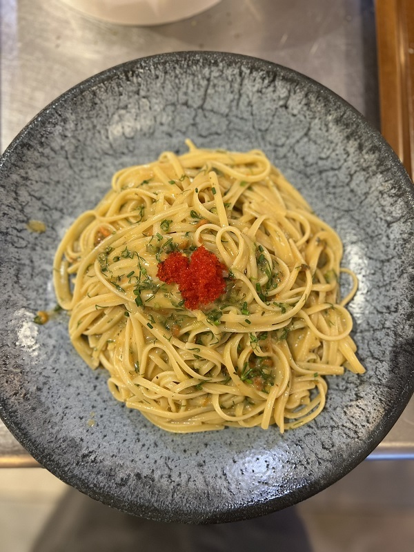 Και μια αχινομακαρονάδα στου "Σταμάτη". Ένα ακόμα "εξωτικό" για τα δεδομένα της Άνδρου πιάτο, που έχει μπει πια σε πολλά εστιατόρια του νησιού.