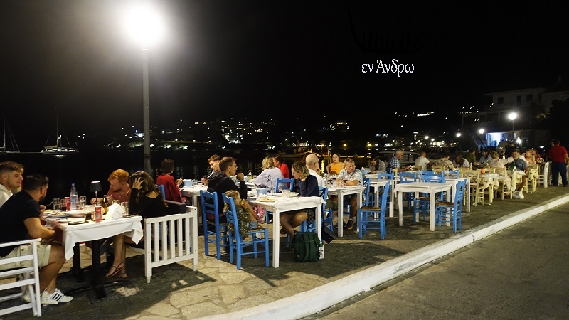 Τελειώνει ο Σεπτέμβριος κι ακόμα και στην υπόλοιπη Άνδρο υπάρχουν τουρίστες. Ξένοι φυσικά. Στην Χώρα για παράδειγμα το Αρχιπέλαγος συνεχίζει με ξένους κυρίως αν και η πελατεία του είναι Έλληνες το καλοκαίρι. Το ανακάλυψαν και οι ξένοι που προτιμούν φαγητά του ταψιού και της κατσαρόλας. Τα Γυάλια της Λίλας παρότι σχετικά μακριά από την Χώρα άντεξαν μέχρι τέλους του Σεπτέμβρη με τους ξένους. Στο Μπατσί ο κλασικός Σταμάτης είναι παντός καιρού όπως βλέπουμε στην φωτογραφία.