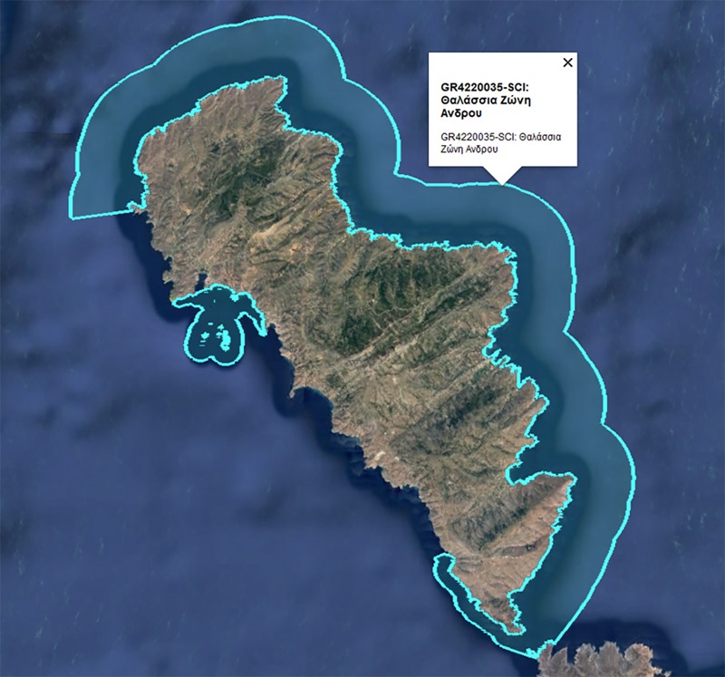 Η θαλάσσια ζώνη natura γύρω από την Άνδρο.