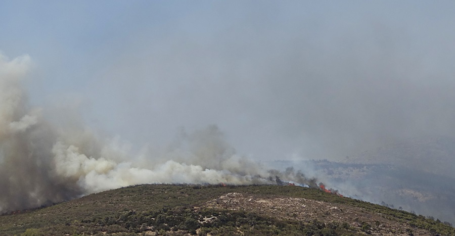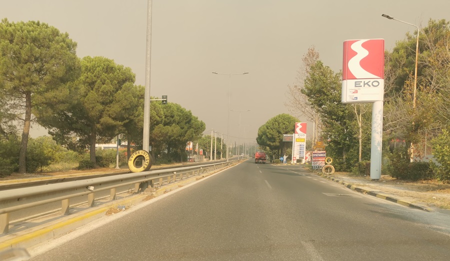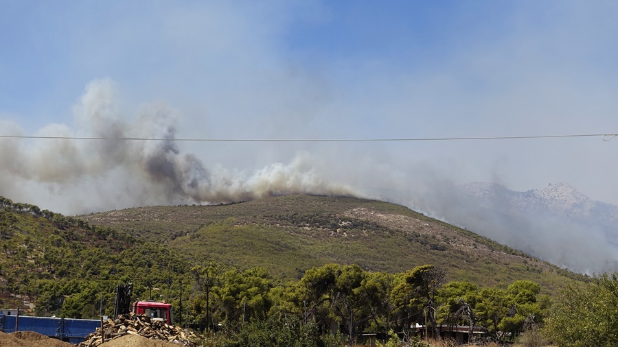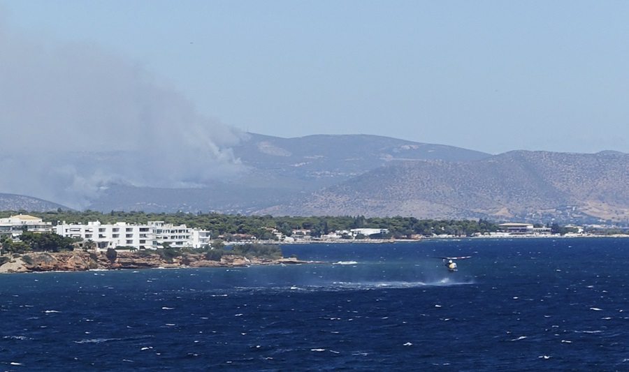 Η ΦΩΤΙΑ ΚΥΚΛΩΝΕΙ ΤΗΝ ΠΕΝΤΕΛΗ ΑΠΟ ΤΗΝ ΜΕΡΙΑ ΤΗΣ ΝΕΑΣ ΜΑΚΡΗΣ. ΤΑ ΕΛΙΚΟΠΤΕΡΑ ΠΑΙΡΝΟΥΝ ΝΕΡΟ ΑΠΟ ΤΟ ΚΟΚΚΙΝΟ ΛΙΜΑΝΑΚΙ.