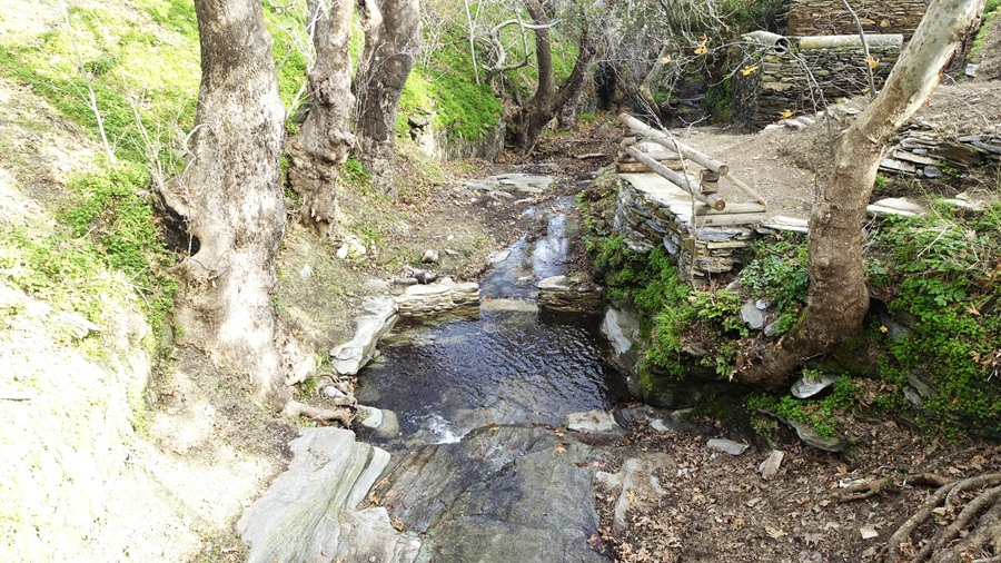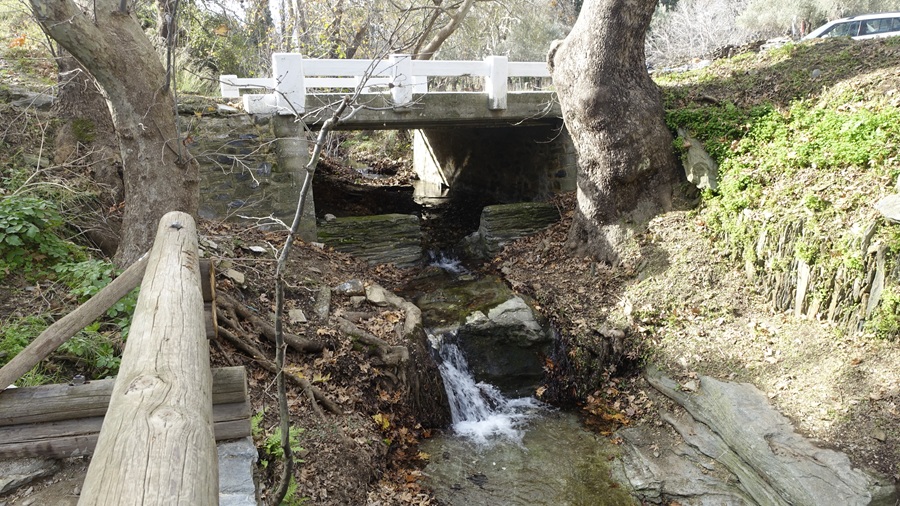 Μάλιστα κάτω από το γεφύρι ο μικρός καταρράκτης κατεβάζει με βουητό το νερό του δίνοντας και μια ακουστική διάσταση στην διαδρομή των νερών. Κάτσαμε ώρα απολαμβάνοντας αυτό που στερηθήκαμε εμείς και η φύση εδώ και πολύ καιρό: το νερό. Και μαζί με αυτό την απόλαυση που προσφέρουν οι διαδρομές του στις μικρές και μεγάλες κοιλάδες της Άνδρου.