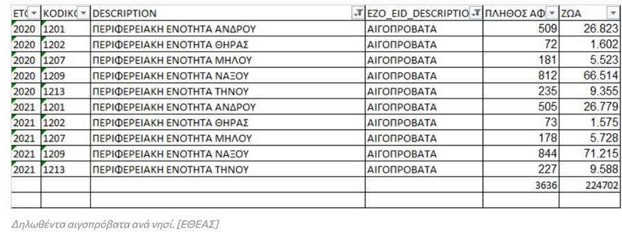 Σύμφωνα με τη Γεωργία Οικονόμου, κτηνίατρο Τήνου, η καταγραφή ακόμη και των δεσποζόμενων ζώων στις Κυκλάδες είναι πολύ δύσκολη. «Οι περισσότεροι τα έχουν στο βουνό και δεν τα βλέπουν κάθε μέρα. Είναι τελείως διαφορετική η λογική της κτηνοτροφίας εδώ απ’ ό,τι στην υπόλοιπη Ελλάδα. Θα έρθει ο ΟΠΕΚΕΠΕ να κάνει τους δειγματοληπτικούς ελέγχους και θα προσπαθεί να βρει 200 δηλωμένα ζώα που δεν έχουν σταβλική εγκατάσταση… Στο τέλος μπορεί να έχει μετρήσει τα 180 και να τα παρατήσει γιατί απλώς δεν μπορούν να τα βρουν τη συγκεκριμένη μέρα».