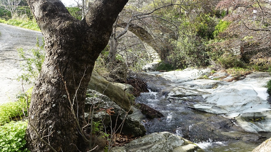 Μετράμε μία-μία τις μέρες της βροχής. Και τραγουδάμε κάθε φορά που βρέχει "βροχή, ωραία βροχή"! Με την λειψυδρία που βασανίζει τον τόπο και τους ανθρώπους, απολαμβάνουμε τις ηλιόλουστες μέρες του Ιανουαρίου, όμως συνάμα περιμένουμε με αγωνία τις βροχές του Φεβρουαρίου, μπας κι ανέβει ο υδροφόρος ορίζοντας, μπας και τρέξουν οι πηγές, τα ρέματα και τα ποτάμια του νησιού. Με αυτές τις σκέψεις κατά νου έφτασα στο γεφύρι του Λέοντα στις Στενιές κι είδα με έκπληξη και χαρά το νερό να τρέχει σε ποσότητα τόση ώστε μα α δεδομένα της δύσκολης εποχής να την θεωρούμε ικανοποιητική...
