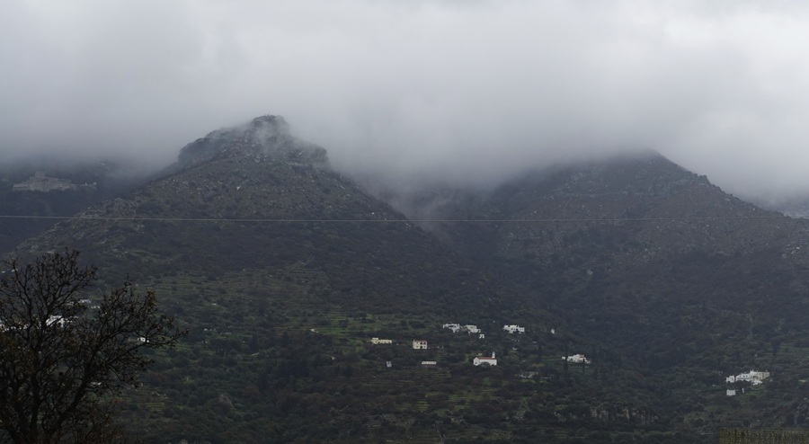 Η Τρίτη 4 Φεβρουαρίου ξεκίνησε από πολύ νωρίς το πρωί με βροχές. Μέχρι αργά το μεσημέρι έβρεχε. Περισσότερο στα ανατολικά του νησιού. Στην Χώρα κάποιες ώρες έβρεξε από μια ποτιστική βροχή μέχρι τα όρια της καταιγίδας. Έκοψε το μεσημέρι. Και μετά σταμάτησε. Βροχή, ωραία βροχή. Ήταν μία ευχαρίστηση να ακούς και να βλέπεις την βροχή. Και τα νερά επιτέλους να τρέχουν...