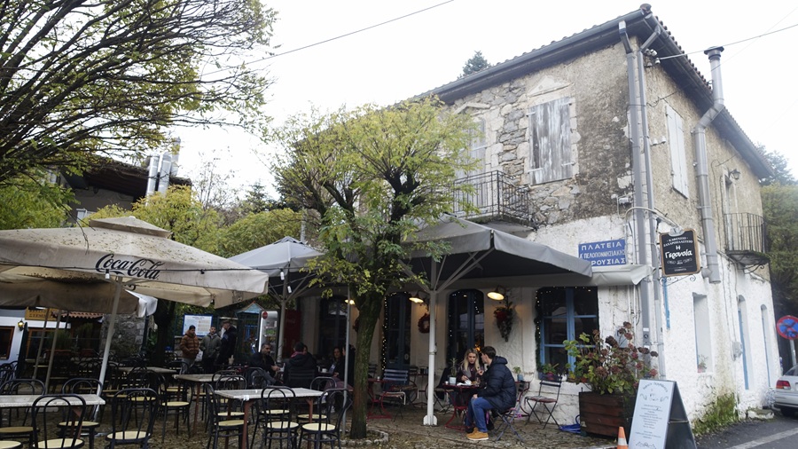 Προχωρημένο πρωινό Κυριακής την ώρα που ξεκινάμε η μικρή πόλη γεμίζει με αυτοκίνητα γεμάτα κόσμο. Από Αθήνα και Τρίπολη. Είδαν καλά καιρό και βγήκαν στο σεργιάνι...