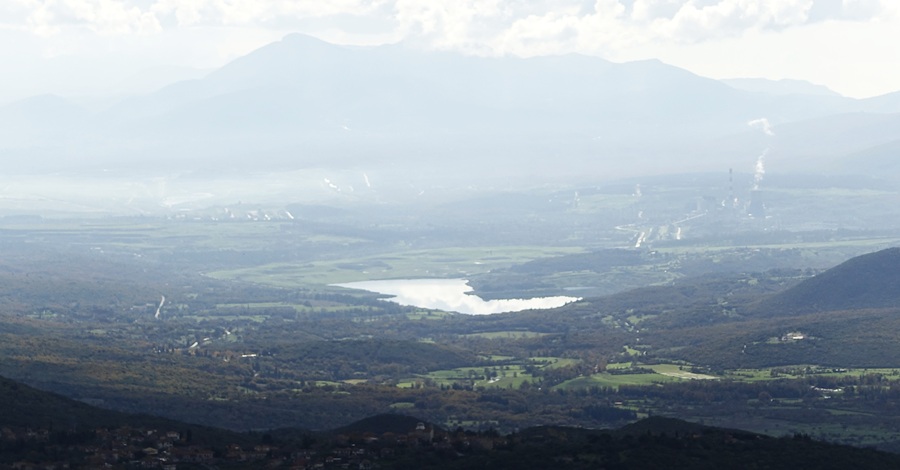 Το τοπίο έξω ακριβώς από την Στεμνίτσα καταπράσινο. Στο βάθος ξεχωρίζει η λίμνη που σχηματίστηκε πλάι στο εργοστάσιο ηλεκτρικού της ΔΕΗ στη Μεγαλόπολη όταν έκλεισαν τα ορυχεία και σχηματίστηκε λίμνη που σήμερα είναι σημαντικός υδροβιότοπος...