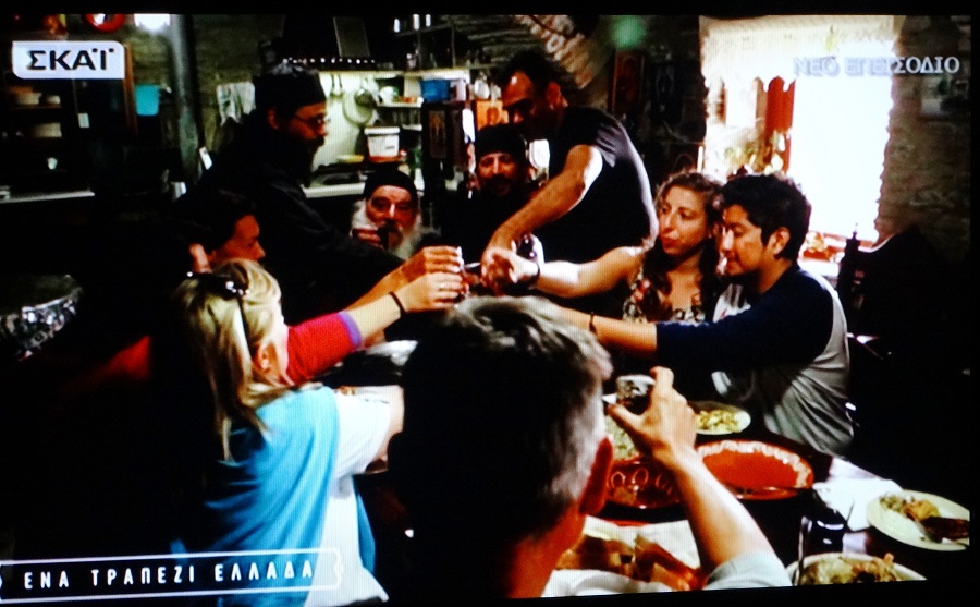 Και τέλος στον Φελλό για ένα τελευταίο πιάτο φουρτάλιας με τον Βαγγέλη. Κάπου εκεί συναντηθήκαμε και καθίσαμε παρέα με την Ντίνα Νικολάου. Οι εντυπώσεις εξαιρετικές. Όμως αυτό που της χαράχτηκε περισσότερο όπως μας είπε ήταν η Μονή Πανάχραντου και η προσωπικότητα του Ευδόκιμου. «Θα άξιζε μια εκπομπή μόνος του» σχολίασε. «Μοναδικό περιβάλλον και μοναδικοί άνθρωποι»…
