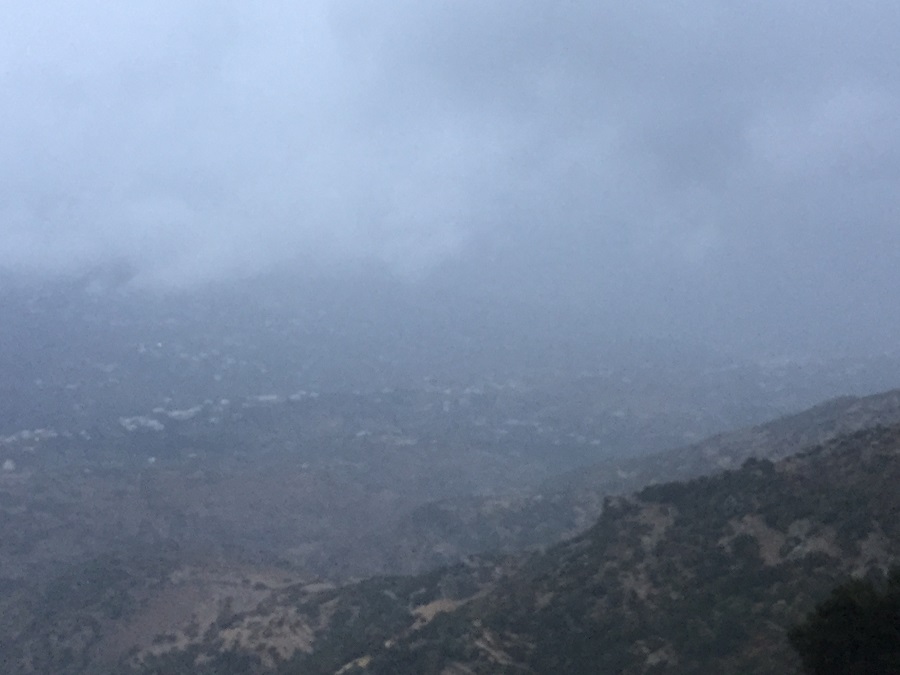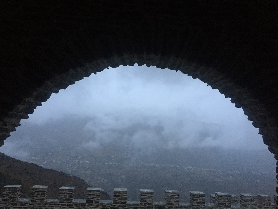Κυριακή αργά το απόγευμα. Η καταιγίδα έχει ξεσπάσει πάνω από την Χώρα. (φωτ. Μονή Παναχράντου).
