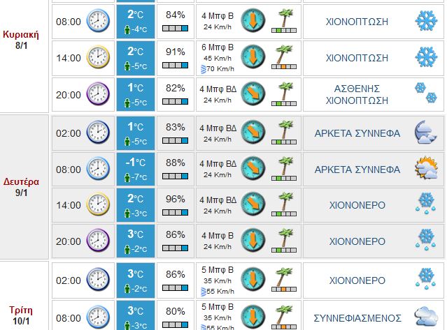 Τις επόμενες τέσσερις μέρες (Σάββατο - Τρίτη) η Ε.Μ.Υ. προβλέπει χιονόνερο ή χιόνι και ακραίες αρνητικές θερμοκρασίες: από 3 έως -7 βαθμούς!!!