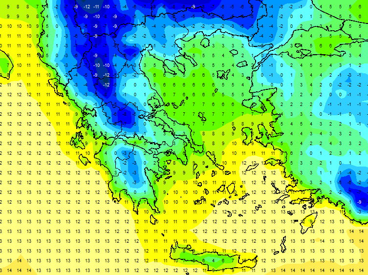 Χάρτης της ΕΜΥ με τις θερμοκρασίες σήμερα