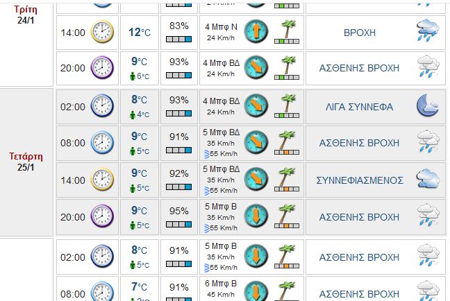 Οι βροχές αναμένονται από σήμερα Δευτέρα το βράδυ (23.1) και θα συνεχιστούν και το επόμενο τριήμερο. Ενισχυμένη υγρασία και τα μποφόρ περίπου 7 και τοπικά 8.
