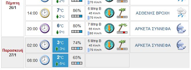 Έχετε δίκιο τη νύχτα της Παρασκευής η πρόβλεψη είναι - 3, αλλά η αίσθηση θα είναι για -5...