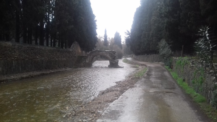Έξω από την Άρνη τα νερά κατεβαίνουν ασταμάτητα από την Κουβάρα, ενώ γύρω η βροχή συνεχίζει...