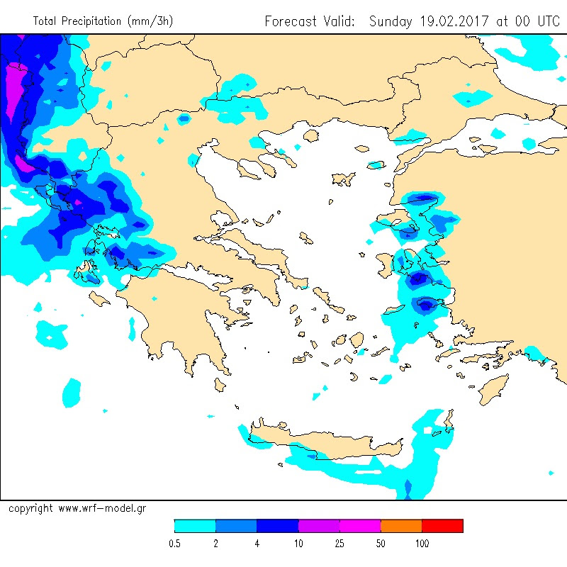 Στους τρεις παραπάνω χάρτες, φαίνεται ότι όλες τις επόμενες μέρες, η Άνδρος δεν επηρεάζεται καθόλου από βροχοπτώσεις.