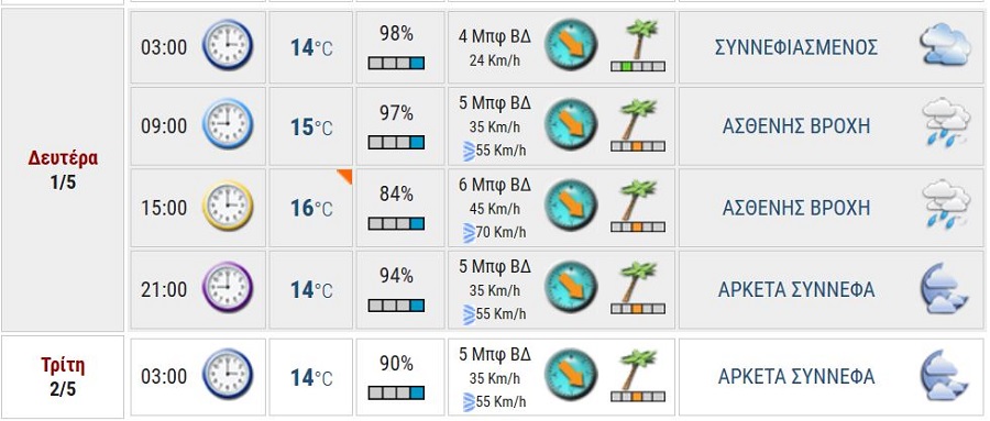 Η ΕΜΥ προβλέπει για την Πρωτομαγιά, ψιλόβροχο (κατά περιόδους) στο νησί, και ένα μαΐστρο (βορειοδυτικός άνεμος) που θα κρατήσει την θερμοκρασία γύρω στους 17 βαθμούς, ενώ τις προηγούμενες μέρες το ελαφρύ νοτιαδακι που θα επικρατεί θα δώσει περισσότερο ήλιο και πιο πολύ ζέστη.