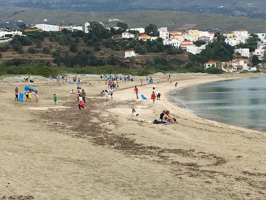 Παραπόρτι. Αποδεδειγμένα η ρυπαρότερη παραλία στην Άνδρο. Κι όμως έχει μια υπέροχη αμμουδιά. Αλλά κάποιοι δεν την σέβονται. Τα παιδιά της Χώρας - που βλέπουμε στην φωτογραφία - μάζεψαν με καθοδήγηση του λιμενικού - 15 σάκους σκουπίδια. Μάλλον θα το θυμούνται όταν μεγαλώσουν...