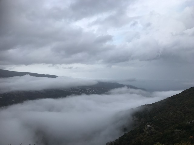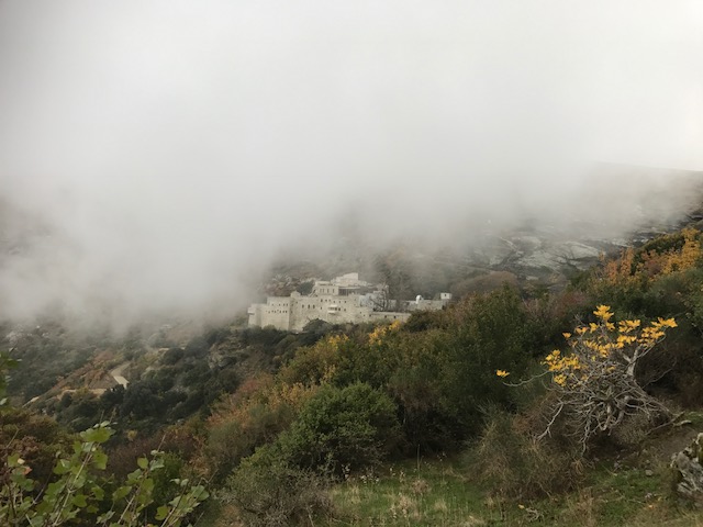 Άλλη μια εντυπωσιακή στιγμή από την καταιγίδα. Τα σύννεφα έχουν πια κατέβει πολύ χαμηλά. Η κοιλάδα της Χώρας και τα χωριά έχουν χαθεί. μαζί τους έχει χαθεί και η θάλασσα. Η βροχή απλώνει παντού...