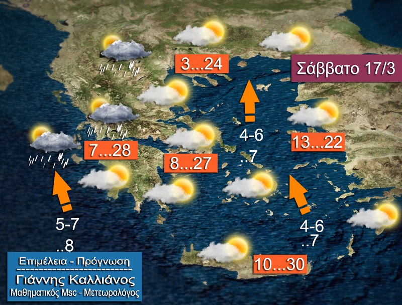 Αναλυτικά η πρόγνωση του μετεωρολόγου Γιάννη Καλλιάνου είναι η εξης: