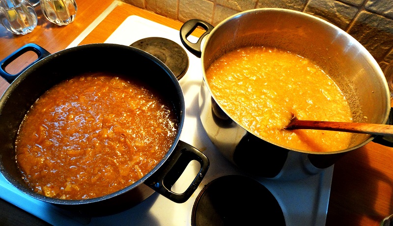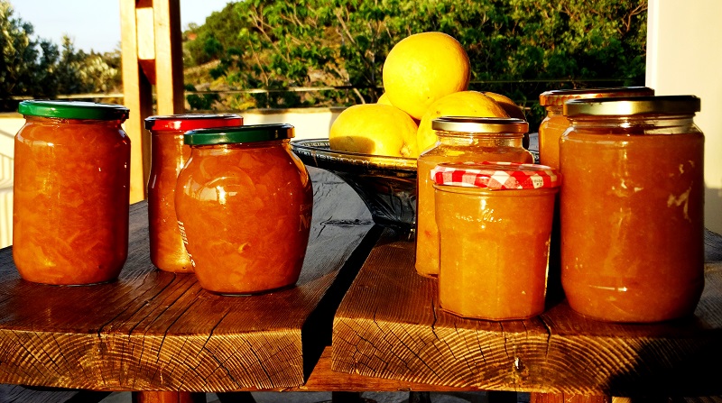 Δύο εντυπωσιακά χρώματα της ανδριώτικης γης... στις κατσαρόλες μας! Αριστερά μαρμελάδα-περγαμόντο. Δεξιά μαρμελάδα-λεμόνι. (Με ανάλογη ποιότητα και χρώμα ζάχαρη - καφέ και ανοικτή καφέ). Οι ειδικοί λένε πως οι μαρμελάδες "ζουν" ευτυχισμένες ένα χρόνο. Άρα κάτι μένει από το υπέροχο πέρασμα αυτών των μοναδικών χρωμάτων, μυρωδιών, γεύσεων, μέχρι να έρθουν οι καρπόι της επόμενης χρονιάς... (φωτ. Εν Άνδρω).
