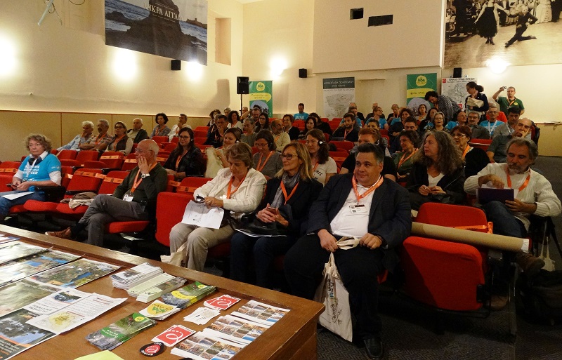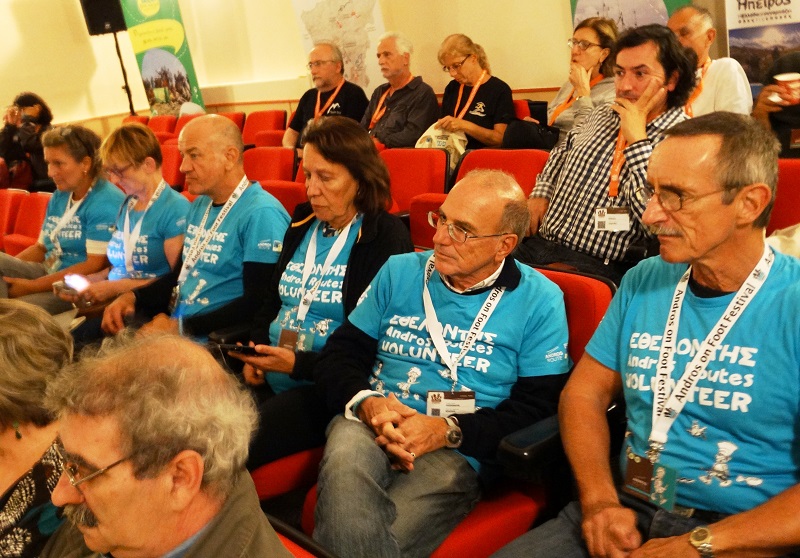 Αισθητή η παρουσία στην αίθουσα και στις διάφορες βοηθητικές διαδικασίες της συνάντησης των εθελοντών που έχουν συσπειρωθεί στο Andros Routes. Με τα ανάλογα μπλουζάκια ξεχώριζαν από μακριά (φωτ. Εν Άνδρω).