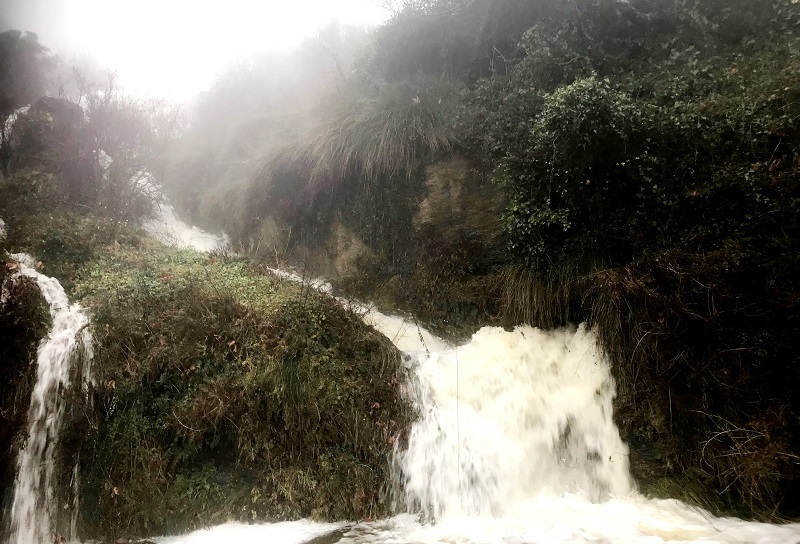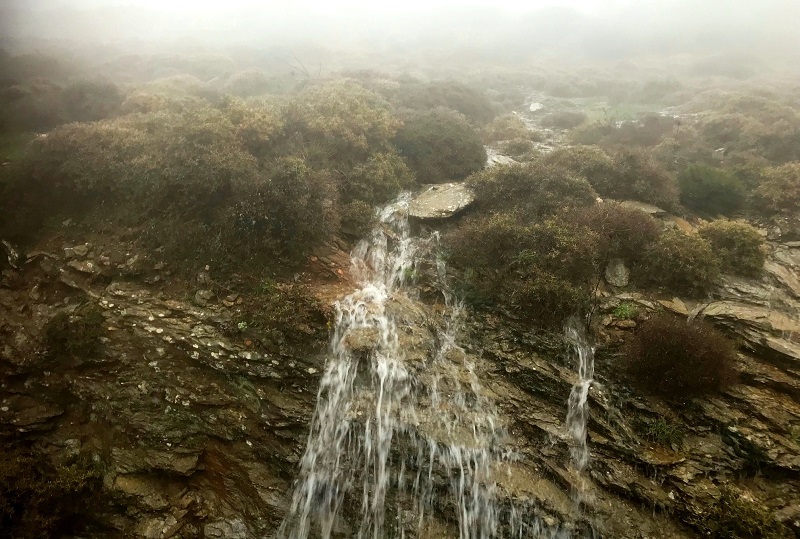 "Και η βρόχα έπεφτε στρέιτ-θρου" είχε πει κάποτε στο Λονδίνο ο αμίμητος Ζαμπέτας με τα φοβερά ελληνοαγγλικά του. Γιατί όντως η βροχή έπεφτε ασταμάτητη διαπερνώντας τα πάντα στην Αγγλία που έτυχε να βρεθεί μια φορά. Το ίδιο και στην Άνδρο ο "Ραφαήλ" έριξε βροχή "με το κανάτι" επί 20 ώρες. Άνοιξαν οι ουρανοί και γέμισε ρυάκια, καταρράκτες και ποτάμια το νησί. Εδώ σκηνή στους Γερακώνες - λίγο πάνω από το μοναστήρι - με βροχή και ομίχλη, ενώ το νερό σχηματίζει καταρράκτες... (φωτ. Χαρίδημος).