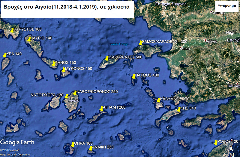 Υδρολογικός χάρτης Αιγαίου. Περίοδος Νοέμβριος 2018 - Ιανουάριος 2019.