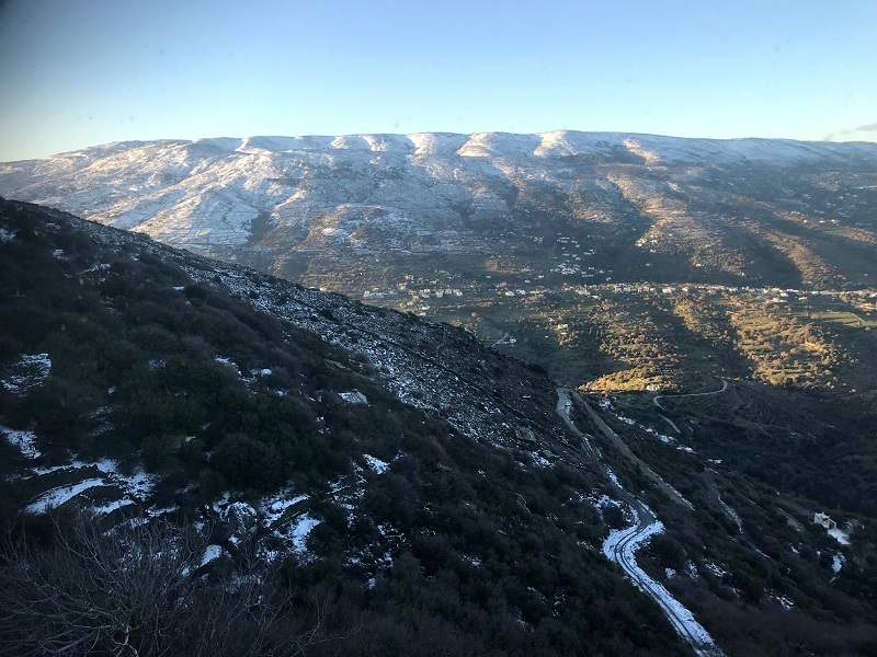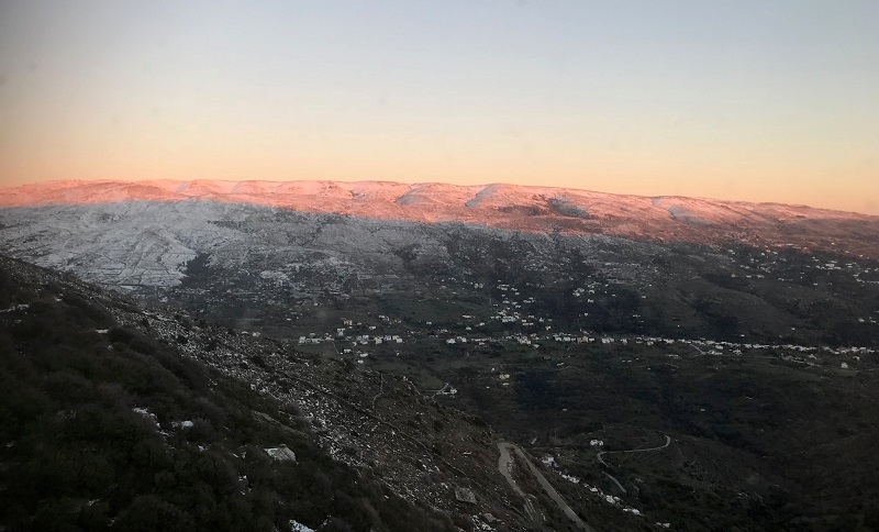 Με το που αρχίζει να ανεβαίνει ο ήλιος πάνω από το νησί αρχίζουν να λιώνουν τα χτεσινά χιόνια. Το φως του κρύου πρωινού ήλιο αναδεικνύεται λίγο-λίγο νικηφόρο... (φωτ. Χαρίδημος).