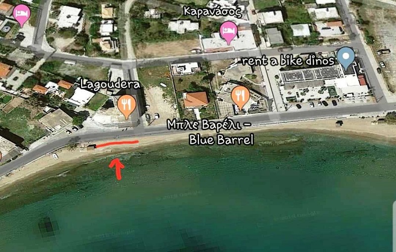 Δορυφορική φωτογραφία από το Google. Είναι εμφανής η εξαφάνιση της άμμου στην παραλία που έκανε ευάλωτες τις παραλιακές κατασκευές και τα τοιχία...