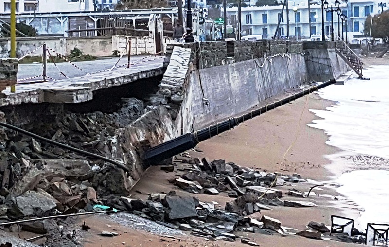 Πριν από μερικά χρόνια το τοιχίο είχε γκρεμιστεί πάλι και ο παραλιακός δρόμος είχε υποστεί καθίζηση ακριβώς εκεί που τελείωσε η προηγούμενη επισκευή που είχε γίνει πριν δύο χρόνια. Μάλιστα "έφυγε" μαζί με το παλιό κι ένα κομμάτι δίπλα στο επισκευασμένο προ διετίας!