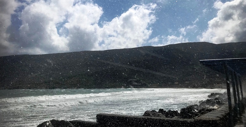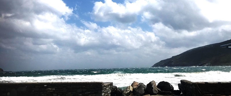 Σήμερα Σάββατο ο άνεμος γύρισε καθαρά βόρειο ανατολικός και σάρωσε το Κόρθι και την Χώρα. Ο Χαρίδημος πήρε σβάρνα του δρόμους κι άρχισε να φωτογραφίζει την Άνδρο. Κυρίως στάθηκε στον αφρισμένο όρμο του Κορθίου. Ισχυρότατες ριπές στα 9 μποφόρ έκαναν την θάλασσα να αφρίζει από την μια άκρη μέχρι την άλλη (φωτ. Χαρίδημος).