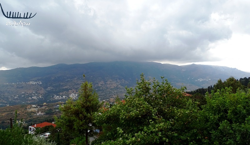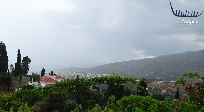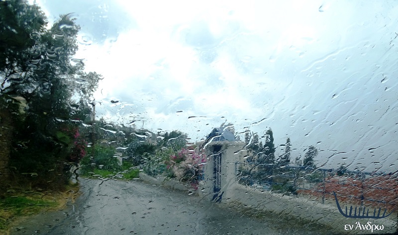 Ανηφορίζουμε την πλαγιά και μαζί μας ανηφορίζει και η Άνδρος, που αγκομαχά στα μέσα Ιουλίου. Βουβός ο καιρός με απότομα μπουρίνια τις τελευταίες μέρες ξαφνιάζει. Βουβό το καλοκαίρι με απότομες στροφές. Βουβός και ο καιρός με απότομα μπουρίνια τις τελευταίες μέρες ξαφνιάζει. Ώσπου ξέσπασε χτες Κυριακή μεσημέρι και στην Άνδρο. Αρχικά στην κατάφυτη πλαγιά έφτασαν οι πρώτες βαριές στάλες της βροχής. Έρχεται καλοκαιρινό μπουρίνι, σκεφτήκαμε. Μπουρίνια είχαμε και θα έχουμε. Τελευταία όλοι μιλάνε για την κλιματική αλλαγή. Ίσως.