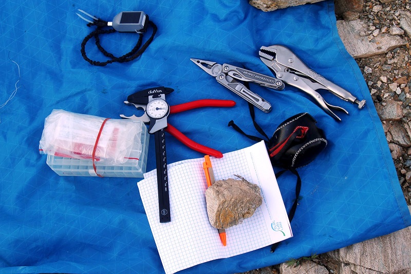 Ο πομπός και εργαλεία τοποθέτησης του στα πουλιά.