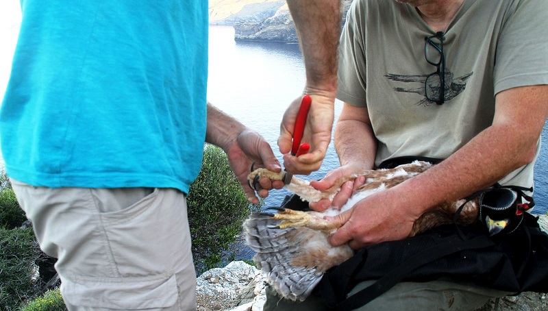 Τοποθέτηση πομπού σε νεαρό Σπιζαετό στην Άνδρο.