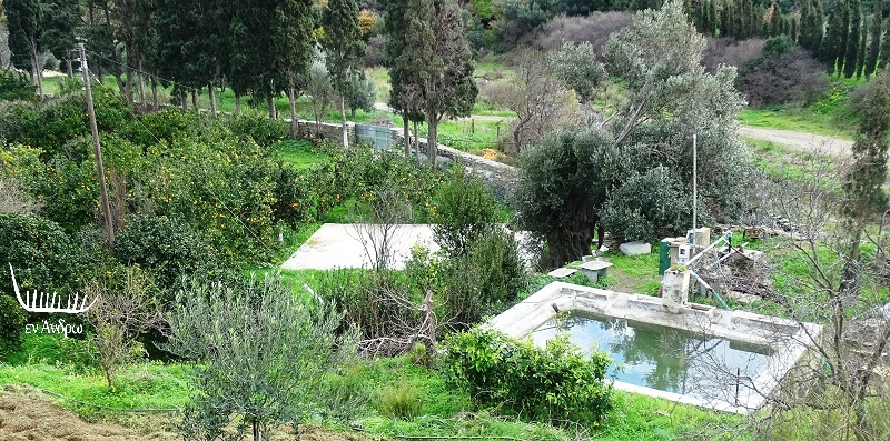Στην άκρη του κτήματος μια ιστορική χαβούζα με παλιό πηγάδι δίπλα της χτισμένο με φροντίδα από παλιούς μαστόρους με καμάρες. Κάποτε γύρω από το μαγκανοπήγαδο γύριζαν τα μουλάρια και οι χωρικοί πότιζαν με αυλάκια. Τώρα η αντλία τραβά νερό από το ανεξάντλητο πηγάδι και το ρίχνει στην χαβούζα. Το χωράφι ποτίζεται με αυτόματο πότισμα!...